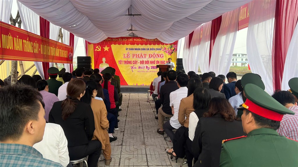 Ngày 23/2, UBND xã Diễn Châu đã long trọng tổ chức Lễ phát động Tết trồng cây “Đời đời nhớ ơn Bác Hồ” Xuân Bính Ngọ 2026. Dự buổi lễ có đồng chí Hà Xuân Quang – Tỉnh uỷ viên, Bí thư Đảng uỷ, Chủ tịch HĐND xã, đồng chí Đặng Thị Thanh – Phó Bí thư Thường trực Đảng uỷ, đồng chí Nguyễn Văn Lợi – Phó bí thư, Chủ tịch UBND xã. các đồng chí trong Ban Thường vụ Đảng uỷ; Thường trực HĐND xã; các Phó Chủ tịch UBND xã; Trưởng các ban, phòng, các tổ chức chính trị - xã hội, lực lượng vụ trang xã. Dự buổi lễ có ông Đào Ngọc Tâm – Giám đốc Công ty THHH Xây dựng Hoàng Sơn.