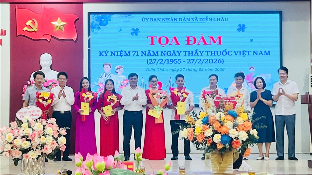 Ngày 27/2, UBND xã Diễn Châu đã long trọng tổ chức lễ kỷ niệm 71 năm ngày thầy thuốc Việt Nam 27/2/1955 – 27/2/2026. Dự buổi lễ có đồng chí Hà Xuân Quang – Tỉnh uỷ viên, Bí thư Đảng uỷ, Chủ tịch HĐND xã, đồng chí Đặng Thị Thanh – Phó Bí thư Thường trực Đảng uỷ, đồng chí Nguyễn Văn Lợi – Phó bí thư, Chủ tịch UBND xã, đồng chí Đào Hồng Thanh – Uỷ viên BTV, Phó Chủ tịch UBND xã, đại diện các phòng ban ngành Đảng uỷ UBND xã, lãnh đạo Bệnh viên Đa khoa Diễn Châu, Trung tâm y tế Diễn Châu, lãnh đạo và Trạm trưởng Trạm 6 Trạm y tế và 33 cán bộ trạm y tế trên địa bàn xã.